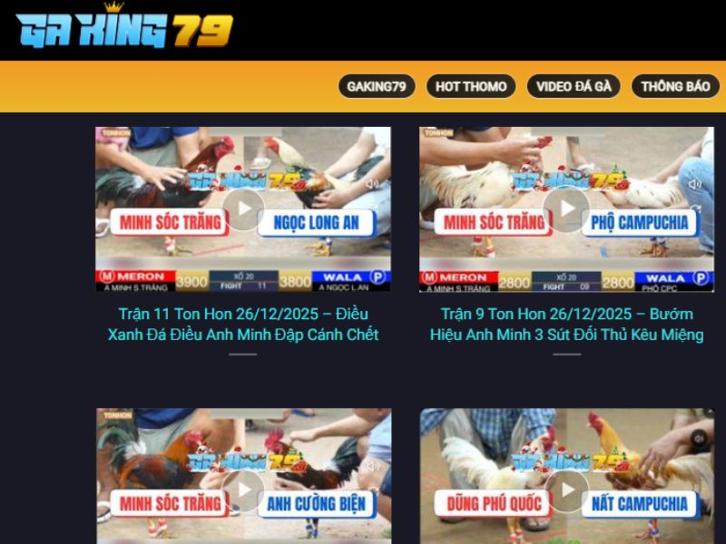 Thay vì phải tìm kiếm nhiều nguồn khác nhau, người chơi chỉ cần truy cập GAKING79. Ở đây cung cấp kênh phát đầy đủ các bồ gà hot nhất hiện nay. Từ hệ thống Thomo Campuchia cho đến các trường gà Sabong Philippines hay các bồ gà mới nổi ở Âu Mỹ.