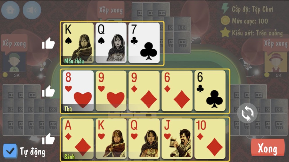 Việc giới hạn thời gian xếp bài giúp ván đấu diễn ra đều nhịp, tránh tình trạng kéo dài không cần thiết. Với người mới, việc làm quen với áp lực thời gian ban đầu có thể hơi khó, nhưng sau vài ván sẽ dần quen với nhịp chơi này.
